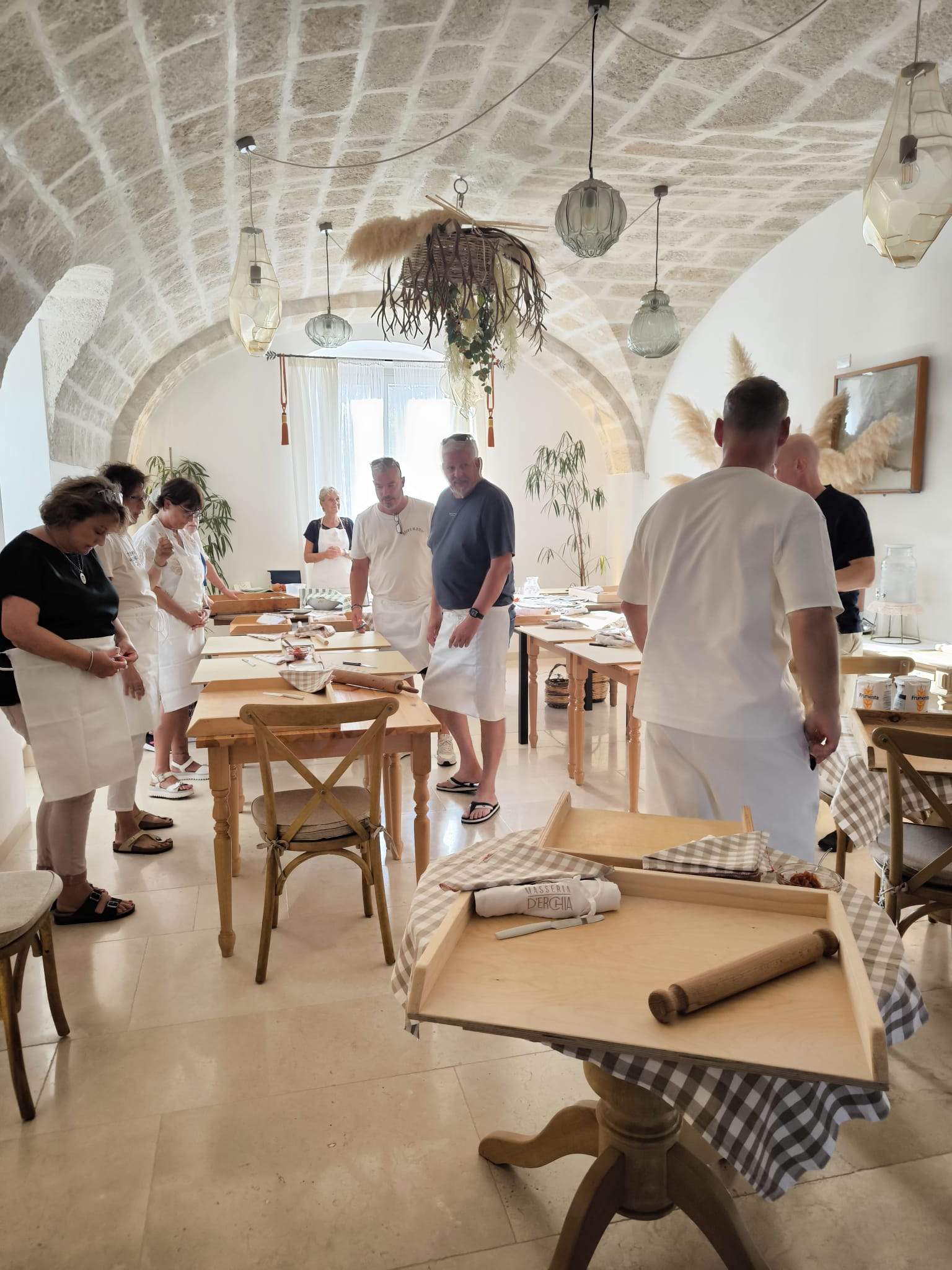 It will be fun to participate in cooking classes dedicated to the manual skills of Apulian cuisine; together, equipped with tables and old tools once used in lieu of modern dies, we will teach you how to prepare homemade pasta, typical desserts and focaccias.